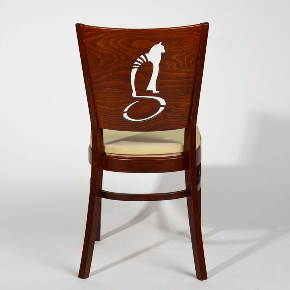 Peits pähkel. Seljatoel kassi figuur.