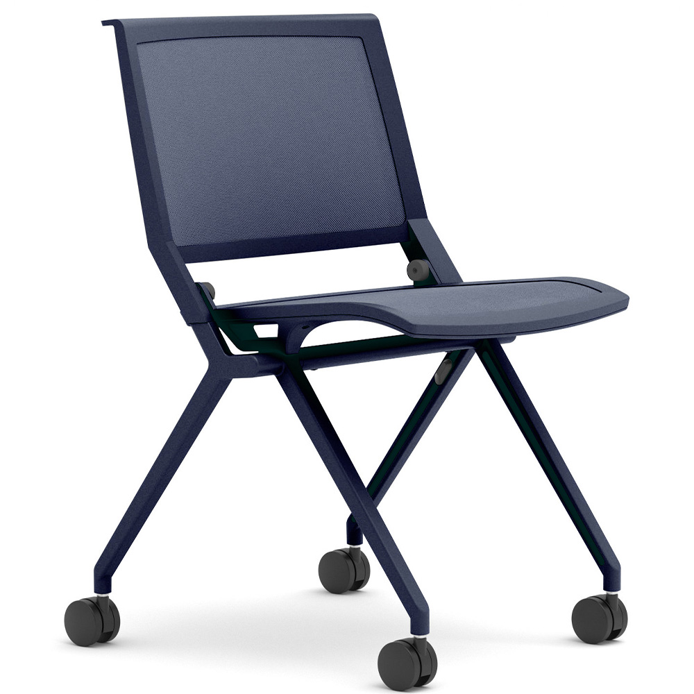 Tipo-NST konverentsitool ratastega, võrgust seljatoega ja polsterdatud istmega, kokkupandav ning ruumisäästlik lahendus koosolekuruumi ja koolitustele.